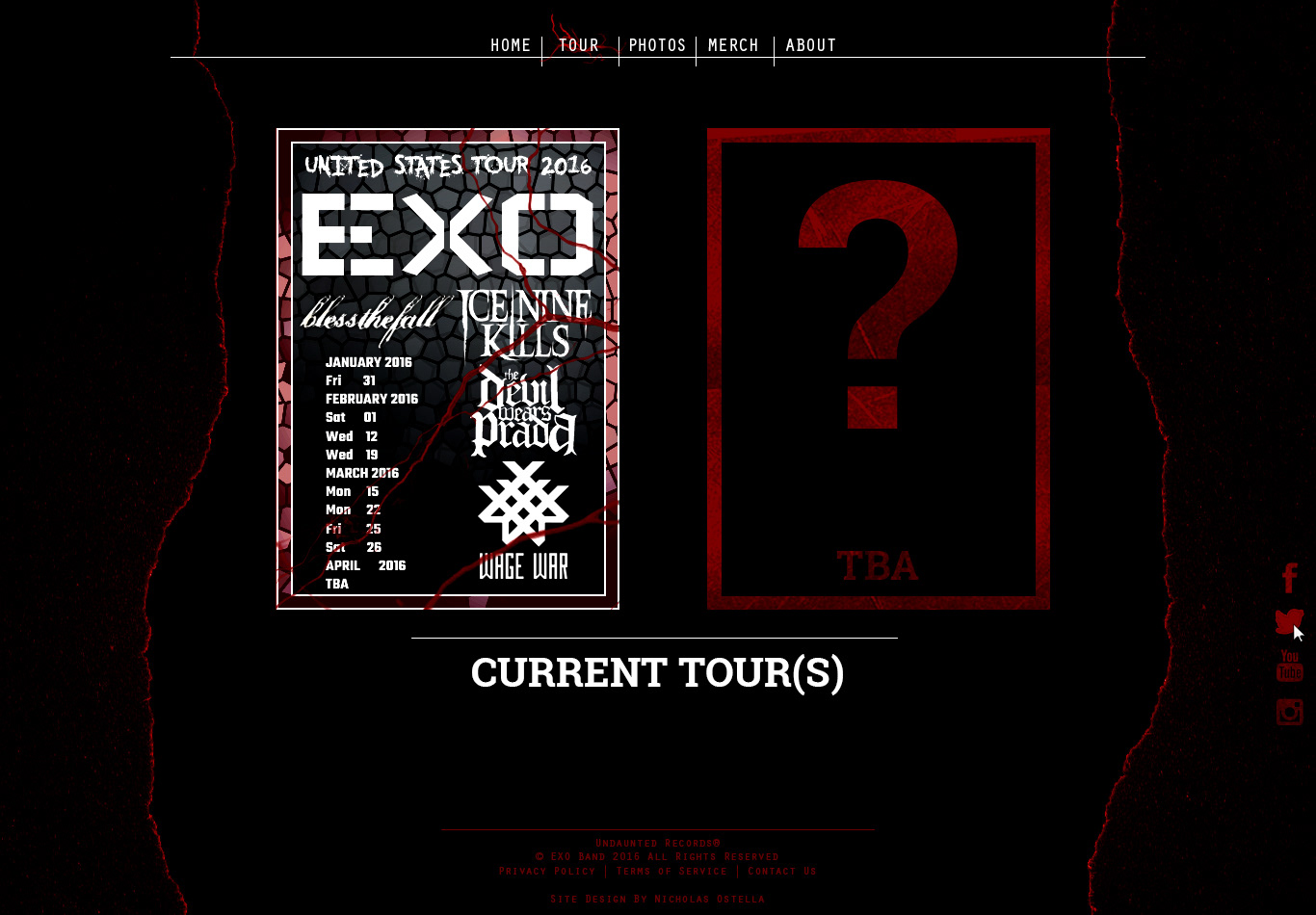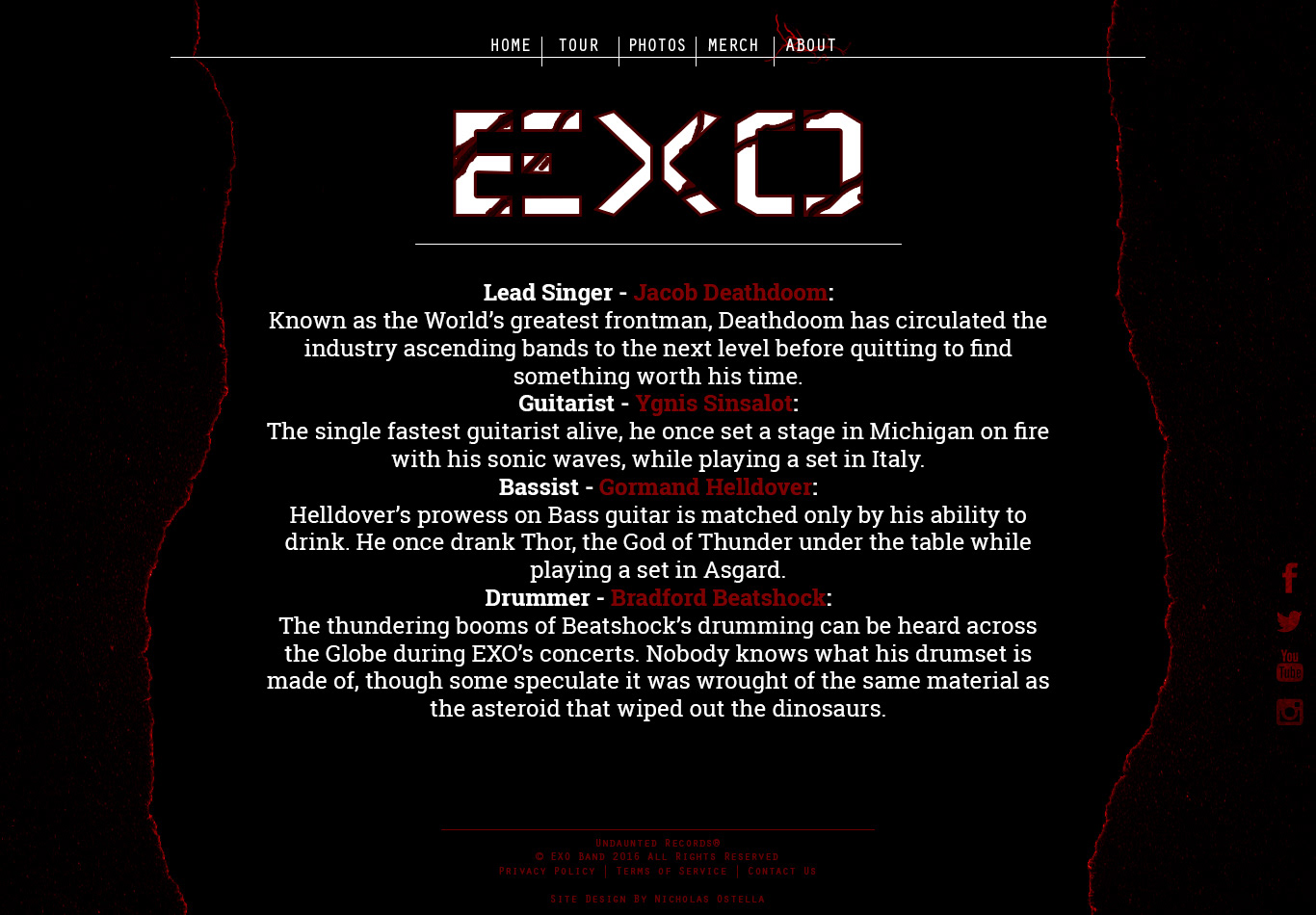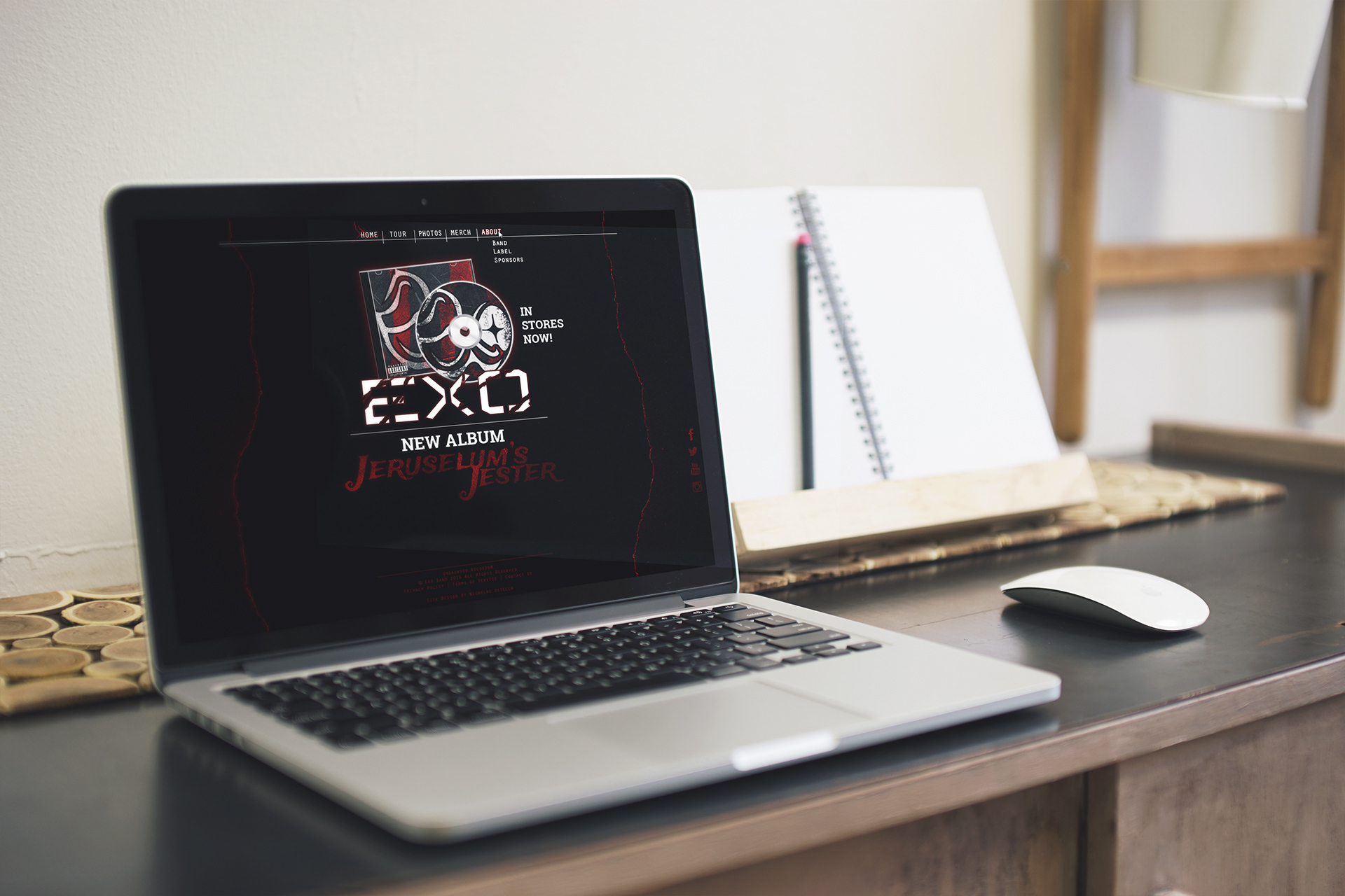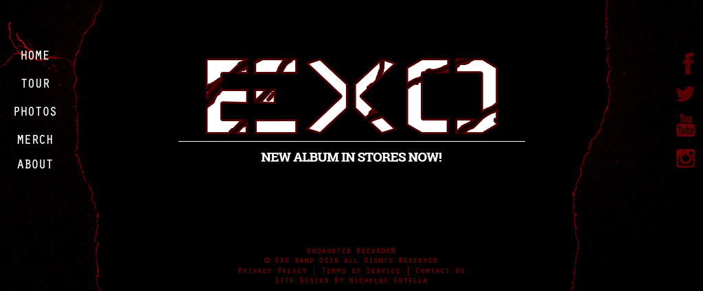 Splash pages for a fictional metal band. Designed by Nicholas Ostella, any likeness to real entities is entirely coincidental. This was designed purely for the purpose of bettering my design capabilities.